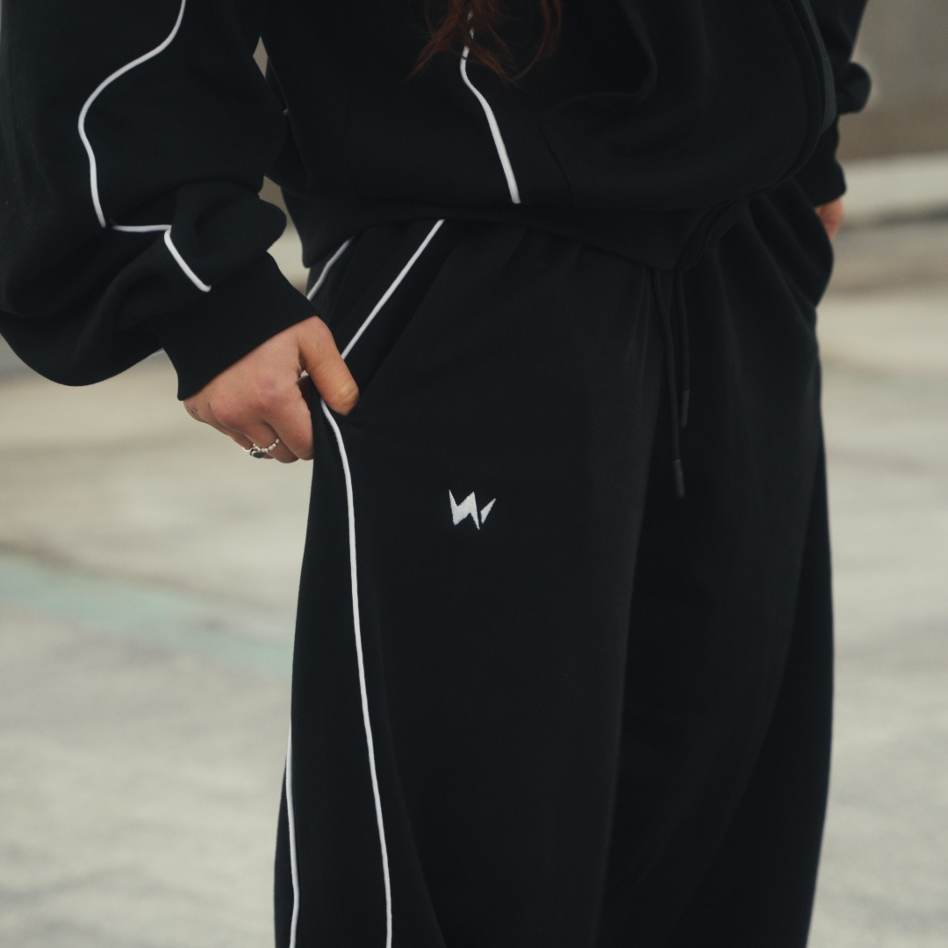 Dès que tu enfiles le jogger Black SINGULARITY I, tu ressens un tombé lourd et structuré qui donne de la tenue à ta silhouette. La coupe oversize crée une allure contemporaine, fluide mais affirmée.Le fleece premium épais enveloppe sans alourdir et apporte un confort constant. Les finitions précises — piping design, broderies SWO, cordon extérieur — donnent un rendu travaillé, loin du jogging classique.Les chevilles élastiquées ajustables, signées du logo de la marque, structurent la ligne de jambe et renforcent l’identité visuelle.Que tu le portes en total look avec le hoodie assorti ou séparément, il apporte immédiatement cohérence et présence.En choisissant ce jogger, tu choisis la qualité, la durabilité et l’expression d’un style maîtrisé.